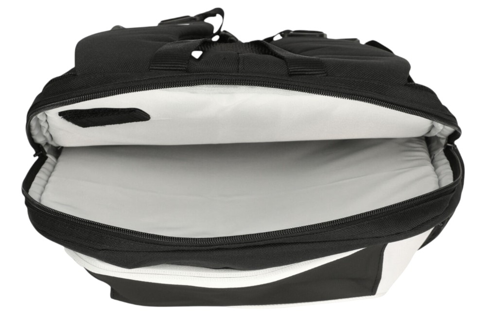 Comfortabele draagopties: twee verstelbare schouderbanden en een stevig handvat.