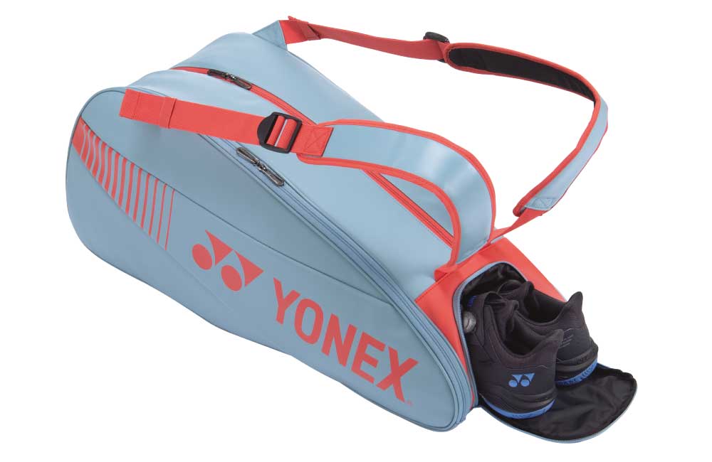 Ga stijlvol en praktisch naar je badmintongame met de Yonex Active Racketbag 82426EX Blue Grey.