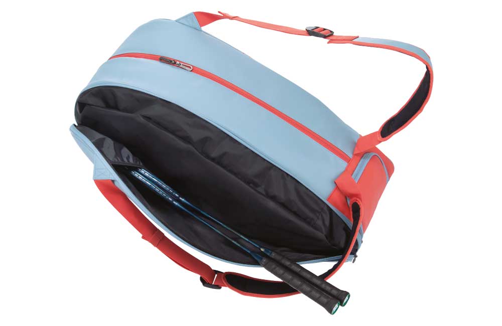 Deze tas biedt ruimte voor al je rackets en andere benodigdheden. Met twee hoofdcompartimenten, een schoenenvak en een accessoirevak kun je alles georganiseerd houden. Draag de tas comfortabel op je rug met de verstelbare schouderriemen of pak het handvat aan de bovenkant.