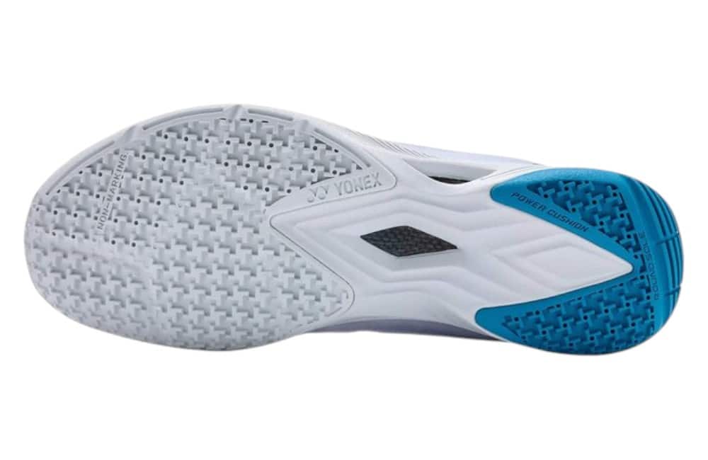 Ontdek de ongekende lichtheid en stabiliteit van de Yonex SHB Aerus Z2 Men White/Blue. Met een gewicht van slechts 240 gram per schoen (herenmaat 41), biedt deze badmintonschoen ultieme prestaties dankzij de Feather Light X zool, RADIAL BLADE SOLE, en Power Graphite Sheet. Het POWER CUSHION dempingssysteem zorgt voor superieure schokabsorptie en energieteruggave.