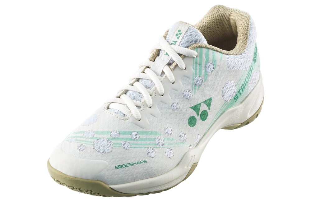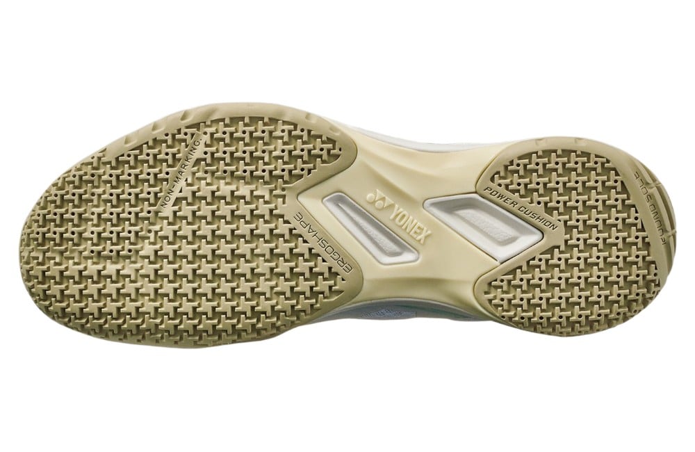 Met een bovenwerk van duurzame synthetische vezels en het gebruik van Durable Skin Light en Double Raschel Mesh, biedt deze schoen de perfecte balans tussen lichtgewicht ondersteuning, ventilatie en duurzaamheid. De geïntegreerde Yonex POWER CUSHION zorgt voor uitstekende schokabsorptie en energieteruggave, waardoor je soepeler en sneller beweegt over de baan.